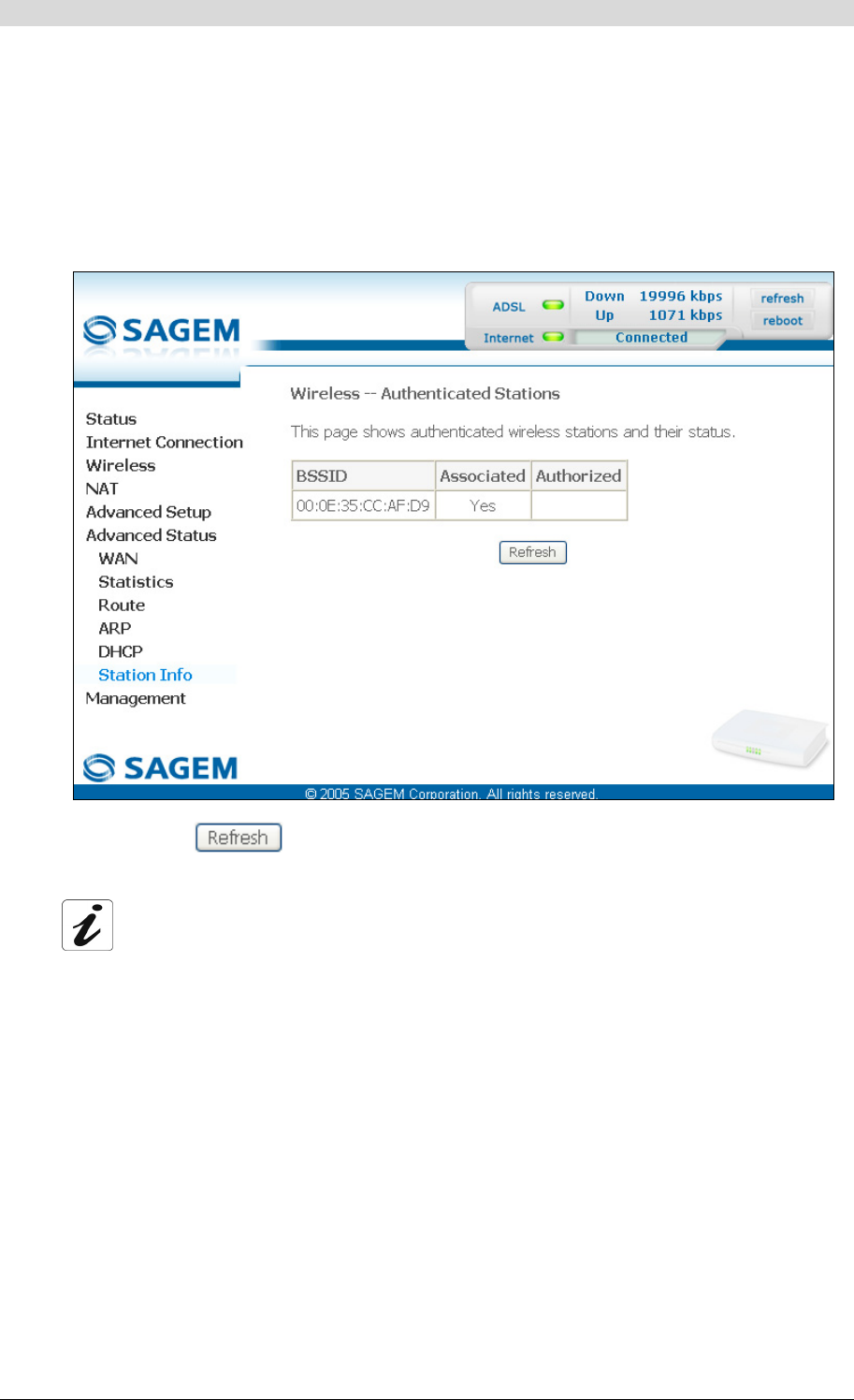 Object: This menu is used to display all the wireless stations certified, with their status.