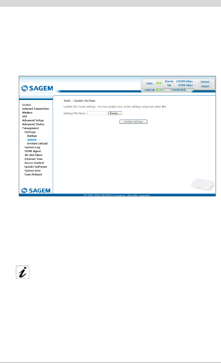• Select the Update sub menu in the Settings menu of the Management section to display