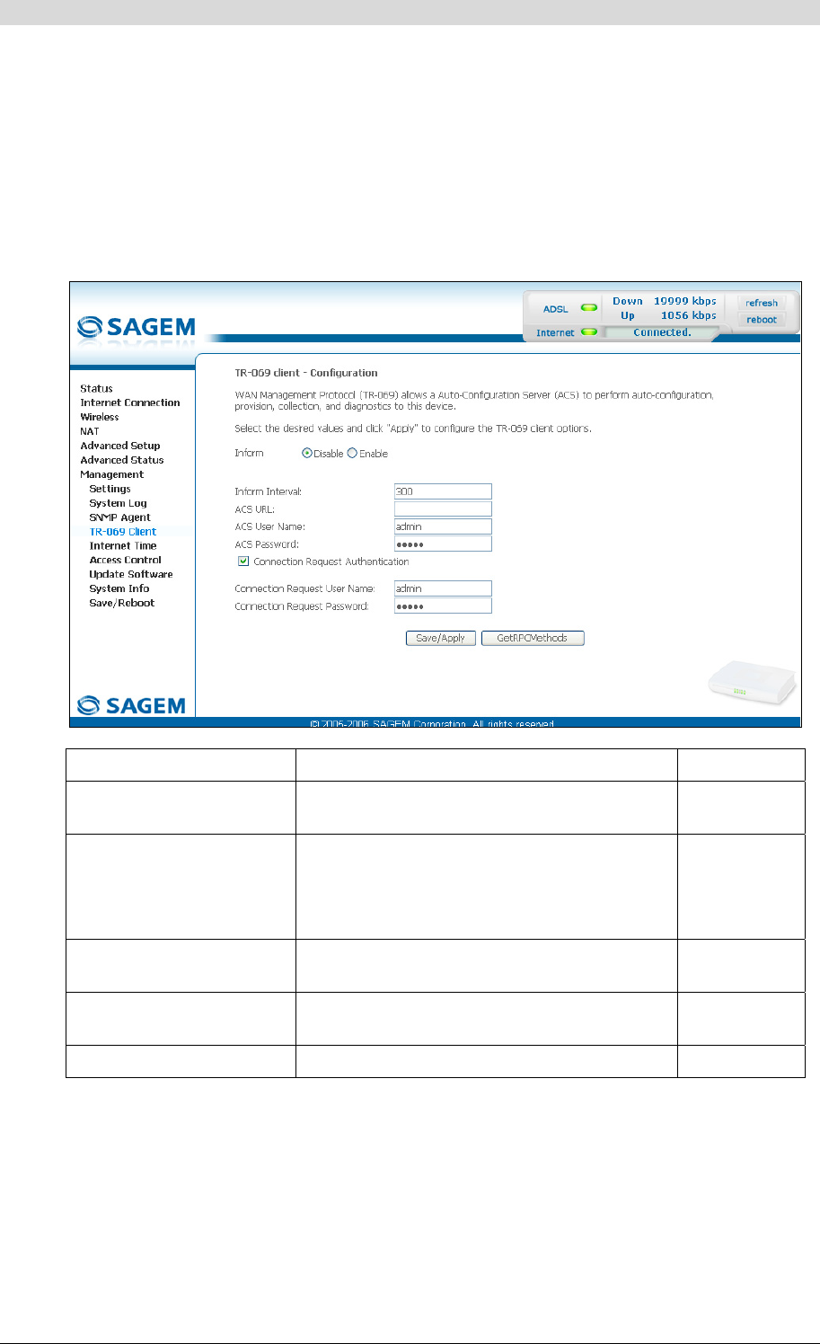 • Select the TR-069 Client menu in the Management section to display the following screen: