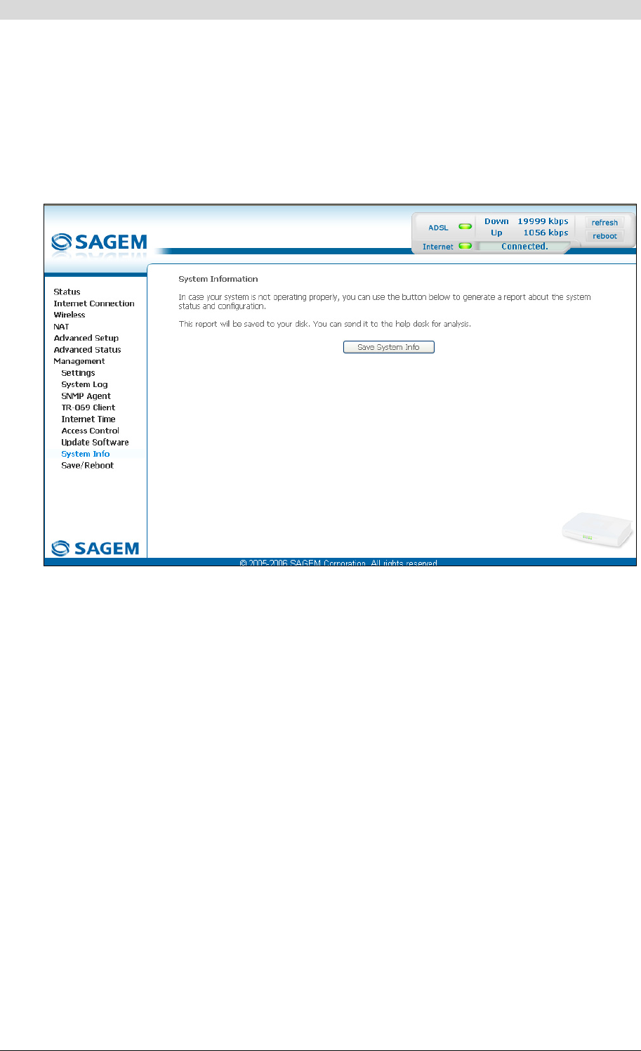 configuration and to save the current report in a file (sysinfo) with f24 type.