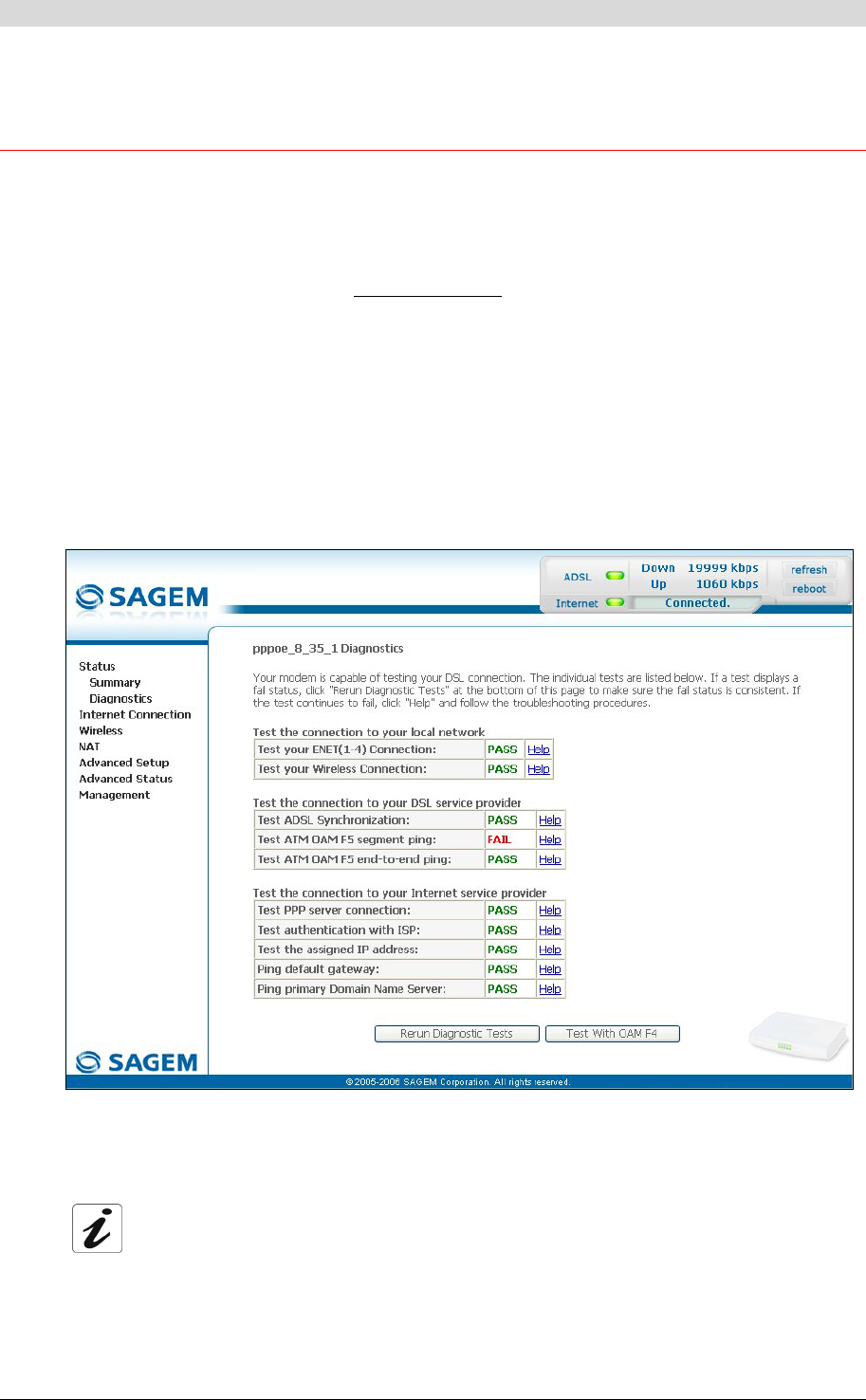 displayed in the "Diagnostics" window. These tests concern the connections to the LAN, to your