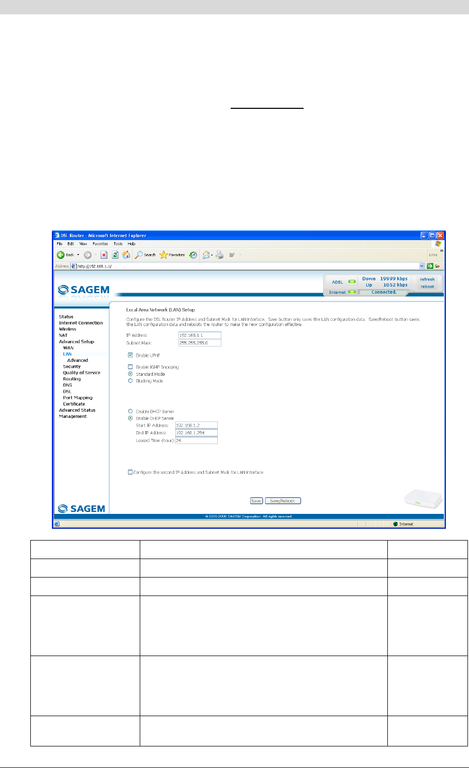 • Click the "LAN" menu of the heading Advanced Setup; the following screen appears:
