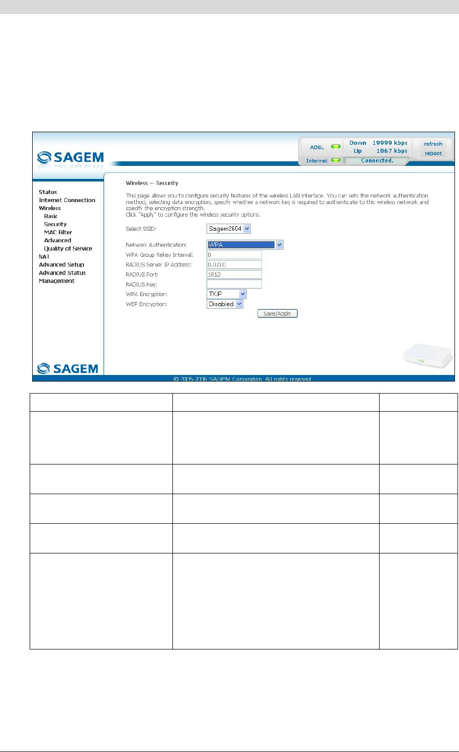 • Select the "WPA" security from the scroll down list; the following screen appears: