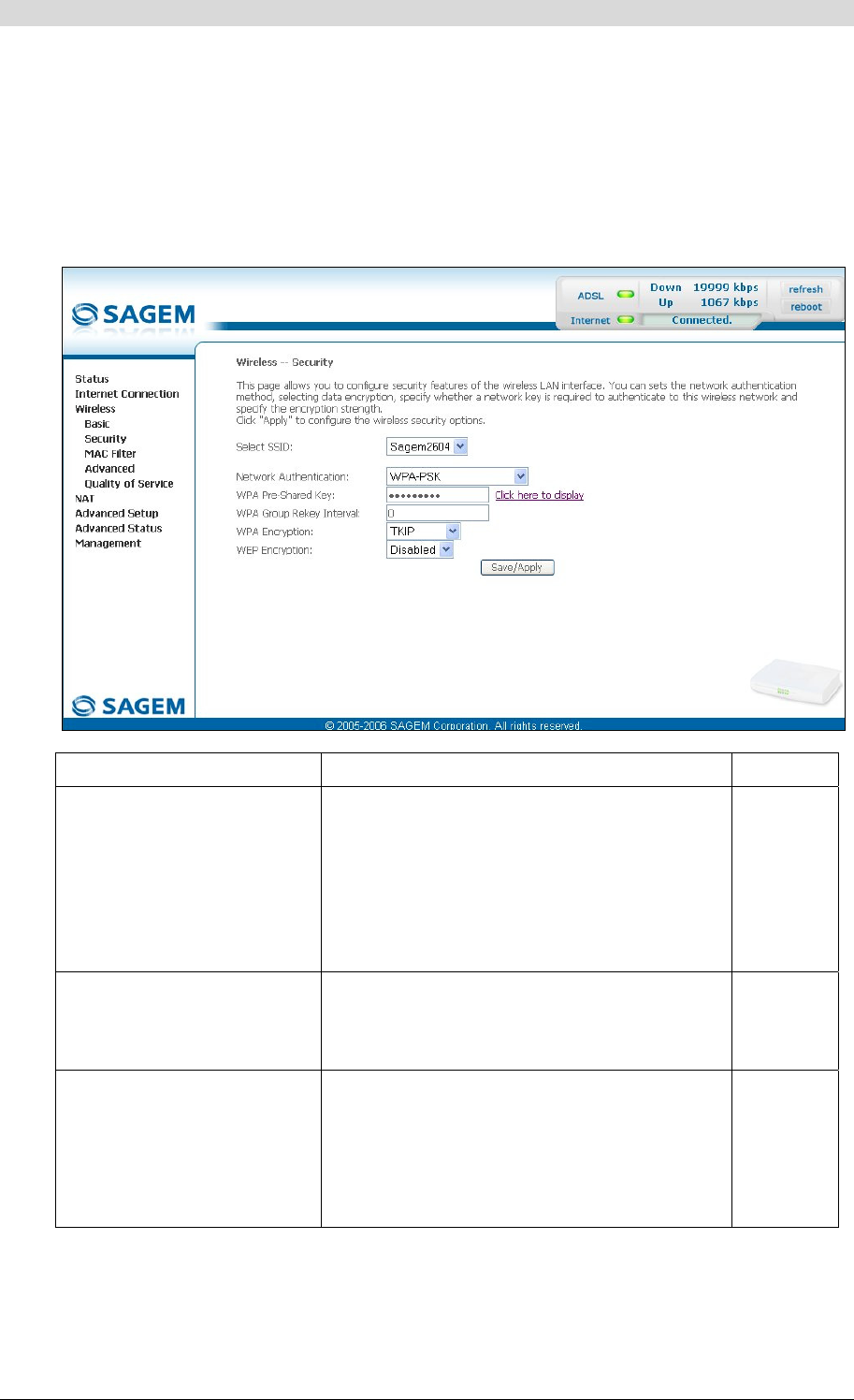 • Select the "WPA-PSK" security from the scroll down list; the following screen appears: