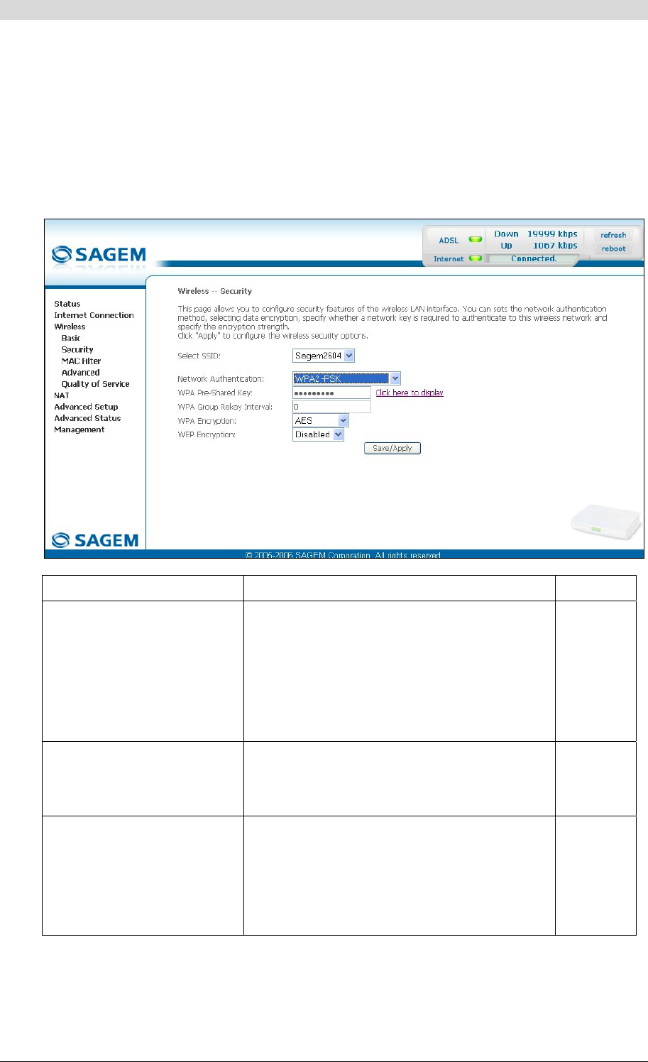 • Select the "WPA2-PSK" security from the scroll down list; the following screen