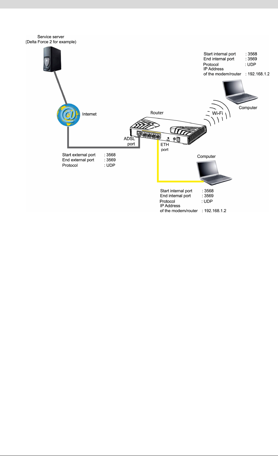 The "Delta Force 2" service is available on your computer via the external ports 3568 and 3569