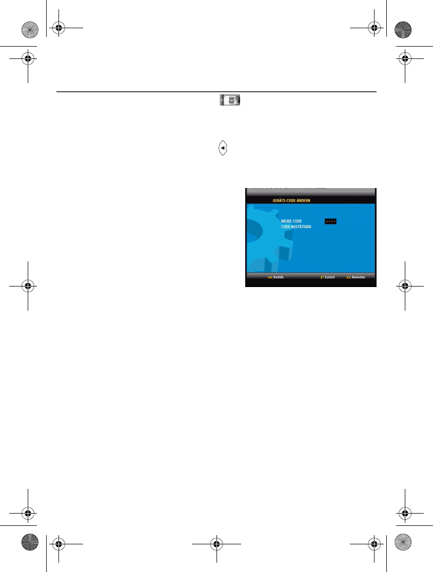 Anmerkung: Wählen Sie als neuen Code "0000", wenn Sie den Schutz des Menüs durch einen Code