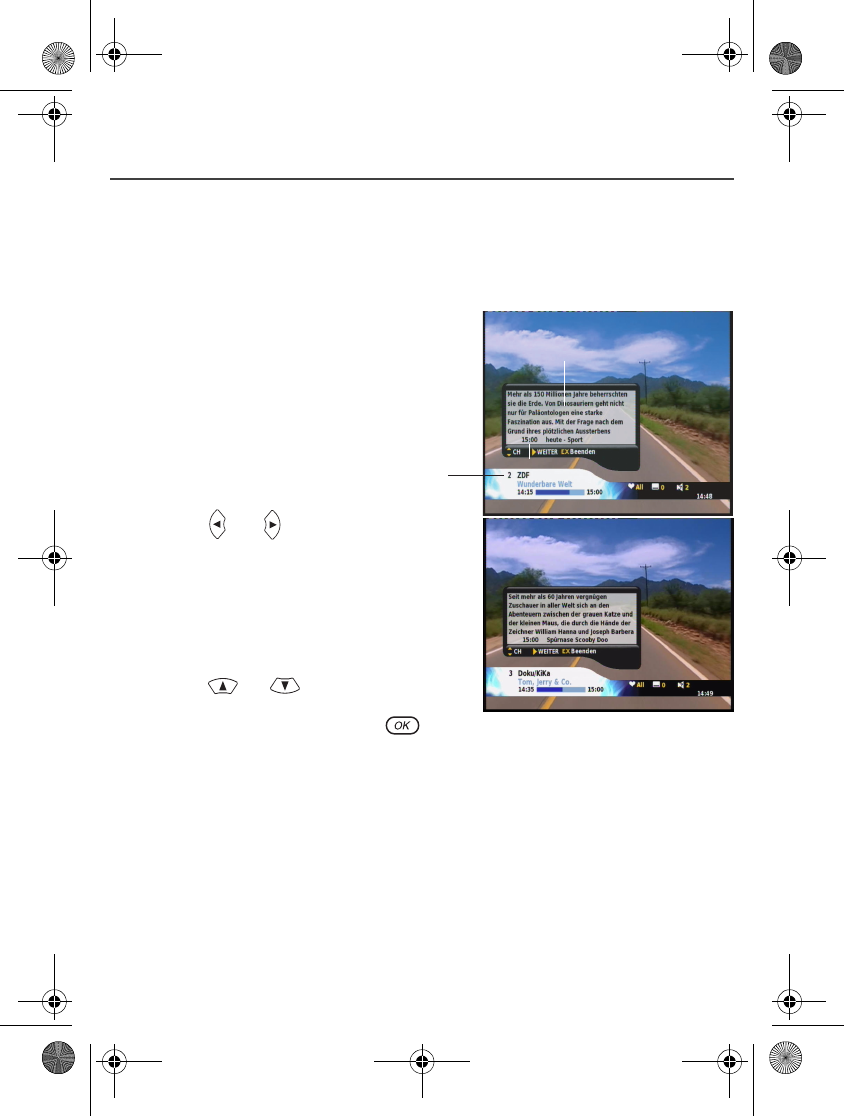 Wenn Sie beim Fernsehen die Taste INFO drücken, wird das Banner "Informationen über die Programme"