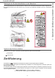 Anbringen der Sicherheitsetiketten an der Maschine Als Sicherheitsmaßnahme sind Warnhinweise am Gerät an den nachstehend bezeichneten Stellen angebracht. Zu Ihrer Sicherheit berühren Sie diese Flächen nicht, wenn Sie einen Papierstau beseitigen oder die Tonerkartusche ersetzen. Symbole des Ein/Ausschalters Gemäß der Norm IEC 60417 verwendet das Gerät folgende Symbole am Ein/Ausschalter: - bedeutet EIN; - bedeutet AUS.