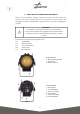 5.3 – DMX MODE 2 channels mode Channel Value Function 1 000 – 255 Master Dimmer 2 000 – 255 Linear Zoom Channel Value Function 1 000 – 255 Master Dimmer 2 000 – 255 Linear Zoom 000 Shutter open 001 – 127 Strobe from min to max 128 – 159 Pulse IN with increasing speed 3 channels mode 3 160 – 191 192 – 255 Random effect with increasing speed 6. - MAINTENANCE To ensure optimal performance, the unit must be frequently cleaned.