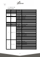 MODALITA' 20 CANALI Canale DMX 1 2 3 4 Funzione Pan Pan fine Tilt Tilt fine 5 Velocità Pan / Tilt 6 Dimmer 7 Strobo 8 9 10 11 12 Rosso Verde Blu Bianco Zoom 13 Virtual color (color macro) 14 Colore di primo piano.