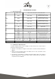 Modalità 9 canali Canale Valore Funzione 1 000 – 255 Dimmer 2 000 – 255 Strobo 3 000 – 255 Cerchio 1 4 000 – 255 Cerchio 2 5 000 – 255 Cerchio 3 6 000 – 255 Cerchio 4 7 000 – 255 Cerchio 5 8 000 – 255 Cerchio 6 9 000 – 255 Cerchio 7 Canale Valore Funzione 1 000 – 255 Dimmer 2 000 – 255 Strobo 3 000 – 255 Macro / Sound 4 000 – 255 Velocità macro / Sensibilità microfono 5 000 – 255 Cerchio 1 6 000 – 255 Cerchio 2 7 000 – 255 Cerchio 3 8 000 – 255 Cerchio