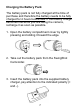 - Installing the Battery Pack 1. Open the battery compartment cover by lightly pressing and sliding it toward the edge. 2. Insert the supplied battery. Make sure the ends (+ and -) of the battery are matching to the polarities indicated in the battery compartment. 3. Snap the cover back into place.