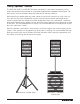 Using Speaker Stands The RSX110, RSX112, and RSX115 feature standard 13∕8" pole mount receptacles, which enable the speaker to be mounted on a standard tripod stand or subwoofer satellite pole. For best results, raise the speakers above the heads of the listening audience. When mounting a speaker onto any stand, always ensure that the stand is on a flat, level surface, with the legs fully extended.