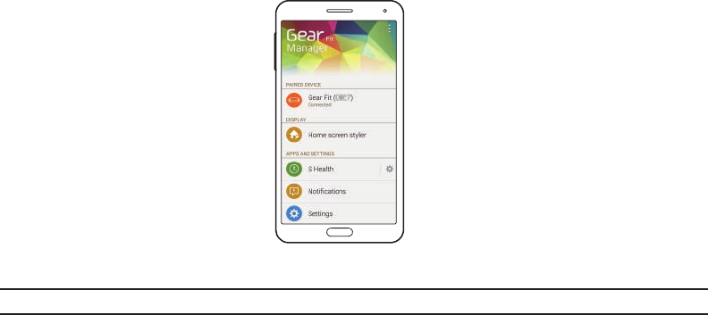 instructions. The Gear™ Fit Manager displays on the mobile device.
