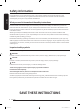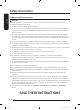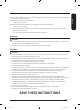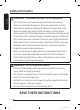 English WARNING - What to do if you smell gas: • • • • • • Do not try to light any appliance. Do not turn on the appliance. Do not touch any electrical switch. Do not use any phone in your building. Clear the room, building or area of all occupants. Immediately call your gas supplier from a neighbor’s phone. Follow the gas supplier’s instructions. • If you cannot reach your gas supplier, call the fire department. CALIFORNIA PROPOSITION 65 WARNING WARNING Cancer and Reproductive Harm - www.P65Warnings.ca.