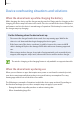 Appendix The touchscreen responds slowly or improperly • If you attach a screen protector or optional accessories to the touchscreen, the touchscreen may not function properly. • If you are wearing gloves, if your hands are not clean while touching the touchscreen, or if you tap the screen with sharp objects or your fingertips, the touchscreen may malfunction. • The touchscreen may malfunction in humid conditions or when exposed to water. • Restart your device to clear any temporary software bugs.