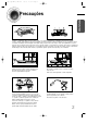 1p~30p(DB120)-GB-els 6/5/03 10:54 Page 5 Precauções PREPARATIVOS Verifique se a alimentação AC da sua casa está de acordo com a etiqueta de identificação localizada na parte de trás do aparelho. Coloque o aparelho horizontalmente, numa base adequada, com espaço suficiente à volta para ventilação (8-10 cm). Certifique-se de que as ranhuras de ventilação não ficam tapadas. Não empilhe nada por cima do leitor. Não coloque o leitor sobre amplificadores ou outros aparelhos que possam ficar quentes.