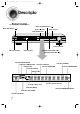 1p~30p(DB120)-GB-els 6/5/03 10:54 Page 10 Descrição —Painel frontal— Botão Reproduzir/Pausa ( Botão Alimentação ( ) Botão ( ) Parar ) Botão Funções Botão Abrir/Fechar Controlo de volume Indicador Standby Sintonizar p/baixo & saltar ( ) Sintonizar p/cima & saltar ( ) Gaveta do disco Indicador DOLBY DIGITAL Indicador LINEAR PCM Indicador DSP Indicador CAPÍTULO Indicador ESTÉREO Indicador PROGRAMA Indicador SINTONIZADOR Indicador TÍTULO Indicador PBC LINEAR PCM L C DSP TITLE PBC CHAP PRGM