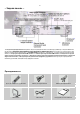 8 – Задняя панель – 1 2 8 3 4 7 5 6 1-Гнездо выхода видеосигнала Соедините гнездо входа видеосигнала на телевизоре (VIDEO IN) с гнездом VIDEO OUT на системе; 2-ПЕРЕКЛЮЧАТЕЛЬ ВЫБОРА ТИПА ВЫХОДНОГО ВИДЕОСИГНАЛА Используйте этот переключатель для выбора типа выходного видеосигнала; 3- РАЗЪЕМ СКАРТ Соедините с телевизором, у которого имеется входной разъем СКАРТ; 4- Гнездо для подключения FM антенны; 5- Клеммы для подключения AM антенны; 6- Входные гнезда для аудио сигнала от внешнего источника; 7- Выходн