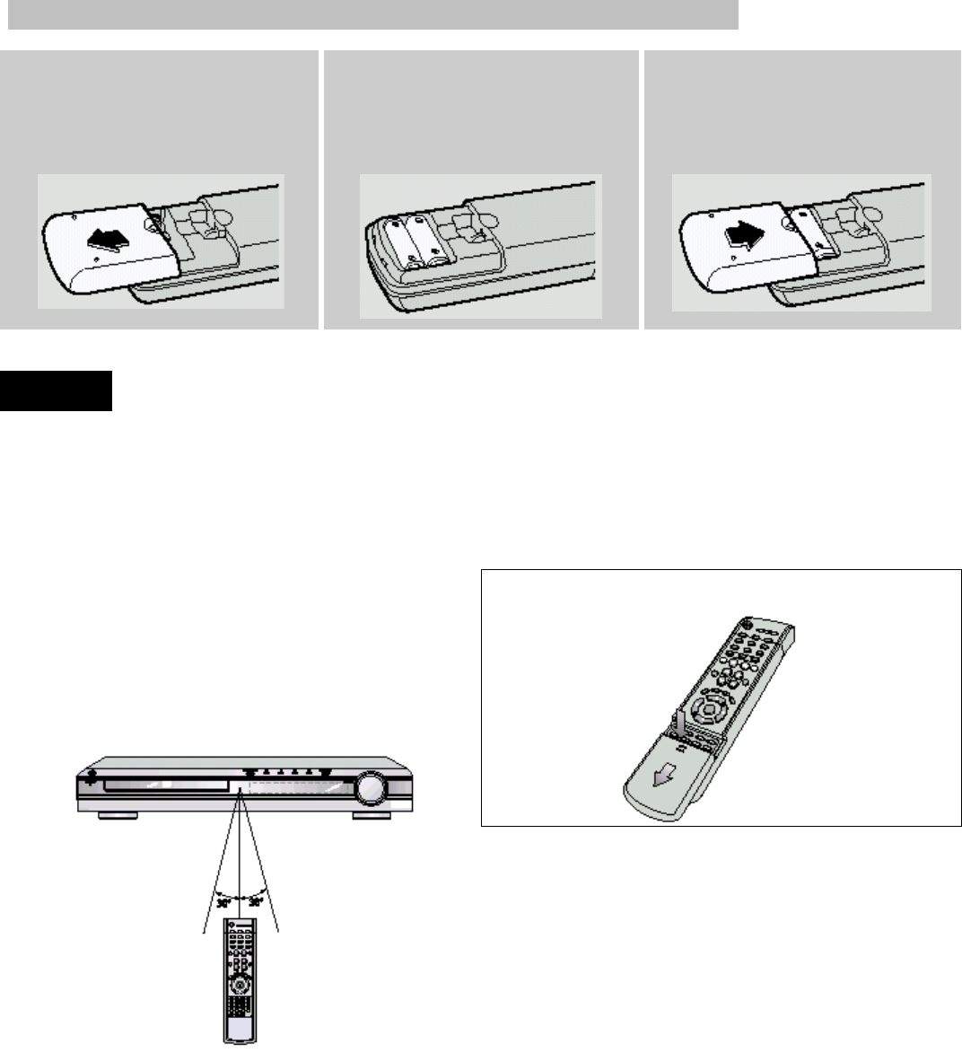 • Устанавливая батареи в пульт дистанционного управления, соблюдайте полярность: совмещайте (+) на