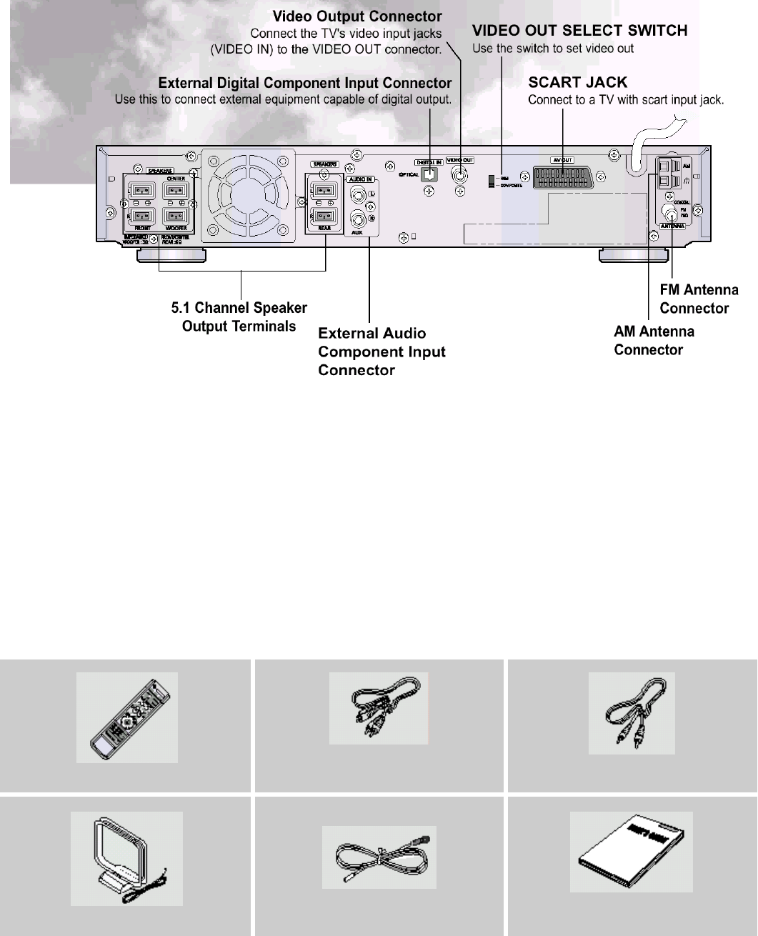 выбора типа выходного видеосигнала; 3- РАЗЪЕМ СКАРТ Соедините с телевизором, у которого имеется входной разъем