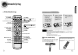 Omschrijving Batterijen plaatsen in afstandsbediening 1 Aan/uit-knop DVD Knop DIMMER Knop OPEN/CLOSE Knop EZ VIEW, NTSC/PAL Knop REMAIN OPEN/CLOSE DIMMER REMAIN DVD TUNER BAND AUX EZ VIEW NTSC/PAL SLOW MO/ST SUB TITLE STEP DSP/EQ REPEAT Knop DVD Knop STEP Knop DSP/EQ Knop AUX Knop TUNER BAND Knop SUBTITLE Knop SLOW, MO/ST Knop REPEAT Knop voor afspelen/pauzeren PL II EFFECT PL II MODE PL II MODE INFO U MEN ENTER 3 Plaats het klepje van het batterijvakje weer terug.