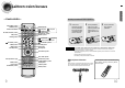 Laitteen osien kuvaus DVD POWER -painike DIMMER-painike AVAA/SULJE-PAINIKE EZ VIEW, NTSC/PAL -painike Paristojen asettaminen kauko-ohjaimeen 1 REMAIN-painike OPEN/CLOSE DIMMER REMAIN DVD TUNER BAND AUX EZ VIEW NTSC/PAL SLOW MO/ST SUB TITLE STEP DSP/EQ REPEAT DVD-painike STEP-painike DSP/EQ-painike TUNER BAND -painike SUB TITLE -painike SLOW, MO/ST -painike REPEAT-painike Toisto/taukopainike PL II EFFECT PL II MODE PL II MODE -painike INFO U MEN ENTER 3 Aseta paristotilan kansi takai
