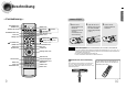 Beschreibung DVD POWER-Taste DIMMER-Taste OPEN/CLOSE-TASTE EZ VIEW/NTSC/PAL-Taste Batterien einlegen 1 Entfernen Sie den REMAIN-Taste OPEN/CLOSE DIMMER REMAIN DVD TUNER BAND AUX EZ VIEW NTSC/PAL SLOW MO/ST SUB TITLE STEP DSP/EQ REPEAT DVD-Taste STEP-Taste DSP/EQ-Taste AUX-Taste TUNER BAND-Taste SUBTITLE-Taste ZEITLUPE/MO/ST-Taste REPEAT-Taste Play/Pause-Taste PL II EFFECT PL II MODE PL II MODE-Taste INFO U MEN ENTER 3 Setzen Sie den Batteriefachdeckel wieder ein.