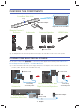 CONNECTING TO YOUR TV You can enjoy TV sound after connecting the Soundbar to your TV with or without a cable. c Important: Before you begin, put the batteries into the remote. See page 17 for instructions. Method 1. Connecting with a Cable Check the HDMI IN (TV-ARC) port on your TV. AUX IN HDMI OUT (TV-ARC) DIGITAL AUDIO IN (OPTICAL) HDMI IN (ARC) HDMI Cable HDMI OUT (TV-ARC) Check the HDMI OUT (TV-ARC) port on the Soundbar main unit. HDMI IN 1 HDMI IN 2 Bottom of Soundbar 1.