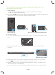 CONNECTING THE SOUNDBAR MAIN UNIT TO THE SUBWOOFER AND SURROUND SPEAKERS You can enjoy rich bass tones and better sound quality by linking the subwoofer to the Soundbar main unit. Recommended Speaker Layout TV Soundbar Main Unit S it Soundbar Main Unit Subwoofer Subwoofer 90° 90° Surround Speaker 110° 110° Surround Speaker L Surround Speaker R Left Right Automatic Connection 1. Connect a power supply to the subwoofer and surround sound speakers. 2.