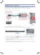 CONNECTING AN EXTERNAL DEVICE HDMI Cable Bottom of the Soundbar HDMI IN HDMI OUT (TV-ARC) Soundbar HDMI IN 1 Or HDMI Cable External Device HDMI IN 2 HDMI OUT 1. Connect an HDMI cable from the HDMI IN 1 or HDMI IN 2 jack on the back of the product to the HDMI OUT jack on your digital device. Use the HDMI cable to connect the HDMI IN port on the TV to the HDMI OUT (TV-ARC) port on the bottom of the Soundbar. button on the right side of the Soundbar or the SOURCE button on the remote control to 2.