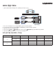 HDMI 연결 가이드 • 연결도 및 삽화는 참조를 위해 제공된 것으로, 실제 제품 형상과 다를 수 있습니다. 사운드바의 윗면 또는 DIGITAL AUDIO IN (OPTICAL) 외부기기 HDMI OUT HDMI HDMI 케이블 SERVICE HDMI IN (ARC) HDMI TO TV (eARC/ARC) DC 19V HDMI 케이블 사운드바의 밑면 1. 2. 3. 4. 5. 외부기기의 HDMI 출력 단자 와 사운드바 밑면의 HDMI 단자를 HDMI 케이블로 연결하세요. TV의 HDMI 입력 단자와 사운드바 밑면의 HDMI TO TV (eARC/ARC) 단자를 HDMI 케이블로 연결하세요. 사운드바와 TV 및 외부기기의 전원을 켜 주세요. (외부입력) 버튼을 누르거나 리모컨의 (외부입력) 버튼을 눌러 “HDMI” 모드를 선택하세요. 사운드바 윗면의 (멀티) 또는 사운드바 표시창에 선택된 “HDMI” 모드가 표시되며 사운드가 출력됩니다.