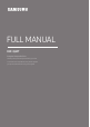 ABOUT THIS MANUAL The user manual has two parts: this simple paper USER MANUAL and a detailed FULL MANUAL you can download. USER MANUAL See this manual for safety instructions, product installation, components, connections, and product specifications. FULL MANUAL You can access the FULL MANUAL on Samsung’s on-line customer support center by scanning the QR code on the left. To see the manual on your PC or mobile device, download the manual in document format from Samsung’s website. (http://www.samsung.
