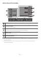 02 PRODUCT OVERVIEW Front Panel / Top Panel of the Soundbar Position the product so that the SAMSUNG logo is located on the top. Top Panel Display Displays the product’s status and current mode. (Power) Button Turns the power on and off. •• Auto Power Down Function The unit turns off automatically in the following situations: –– In D.IN / HDMI / BT / USB Mode : If there is no audio signal for 20 minutes. -/+ (Volume) Button Adjusts the volume.