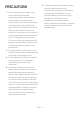 Declaration d’exposition aux radiations: 10. Placez le cordon d’alimentation de sorte qu’il Cet equipement est conforme aux limites ne puisse être ni piétiné ni pincé, d’exposition aux rayonnements IC RSS-102 particulièrement au niveau de la fiche, de la etablies pour un environnement non controle. prise de courant et du point de sortie de Cet equipement doit etre installe et utilise avec l’appareil. un minimum de 20 cm de distance entre la source 11.