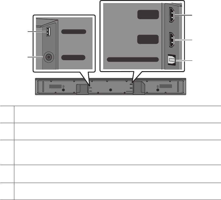 Connect a USB device here to play music les stored on the USB device through the Soundbar.