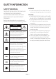 SAFETY INFORMATION SAFETY WARNINGS WARNING •• To reduce the risk of fire or electric shock, do TO REDUCE THE RISK OF ELECTRIC SHOCK, DO not expose this appliance to rain or moisture. NOT REMOVE THE COVER (OR BACK). CAUTION NO USER-SERVICEABLE PARTS ARE INSIDE. REFER SERVICING TO QUALIFIED SERVICE PERSONNEL. Refer to the table below for an explanation of symbols which may be on your Samsung product. CAUTION RISK OF ELECTRIC SHOCK. DO NOT OPEN. This symbol indicates that high voltage is present inside.