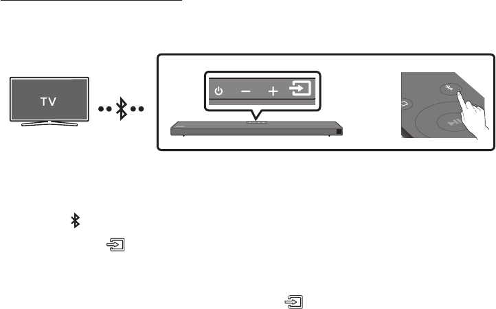 • When the TV is connected, [TV Name] → “BT” appears on the Soundbar’s front display.