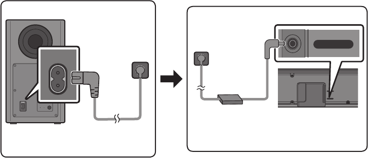 Utilice los componentes de alimentación para conectar el subwoofer y la Soundbar a un tomacorriente
