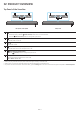 Bottom Panel of the Soundbar SERVICE 1 DIGITAL AUDIO IN (OPTICAL) 3 HDMI 4 HDMI TO TV (eARC/ARC) 5 2 SERVICE DIGITAL AUDIO IN (OPTICAL) HDMI IN 1 HDMI HDMI IN 2 HDMI TO TV (eARC/ARC) 1 POWER Connect the Soundbar’s AC power cable. (See page 14) 2 SERVICE Connect a USB storage device to upgrade the product’s software. 3 DIGITAL AUDIO IN (OPTICAL) Connect to the digital (optical) output of an external device.