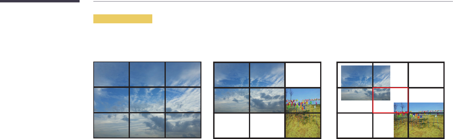 Auf den Anzeigen einer Videowand können unterschiedliche Inhaltsdateien wiedergegeben werden.
