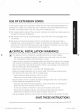 Appendix Specifications Oven Cavity LT Controls 10 power levels, including Defrost Timer 99 minutes, 99 seconds Power Source 120 VAC, 60 Hz Power Consumption 1700 watt Microwave / 1750 Watt Heater Microwave Power Output G50 watts Cook Top Light 40 Watt incandescent lamp (2 EA) Oven Light 20 Watt halogen lamp Oven Cavity Dimensions (inches) (FH) x 1470) Outside Dimensions (inches) 2977 Shipping Dimensions (inches) A305 (WW) X20 fs (HY X19 4570) Reshipping Weight 74.4 1bs / 86 Ibs 33.