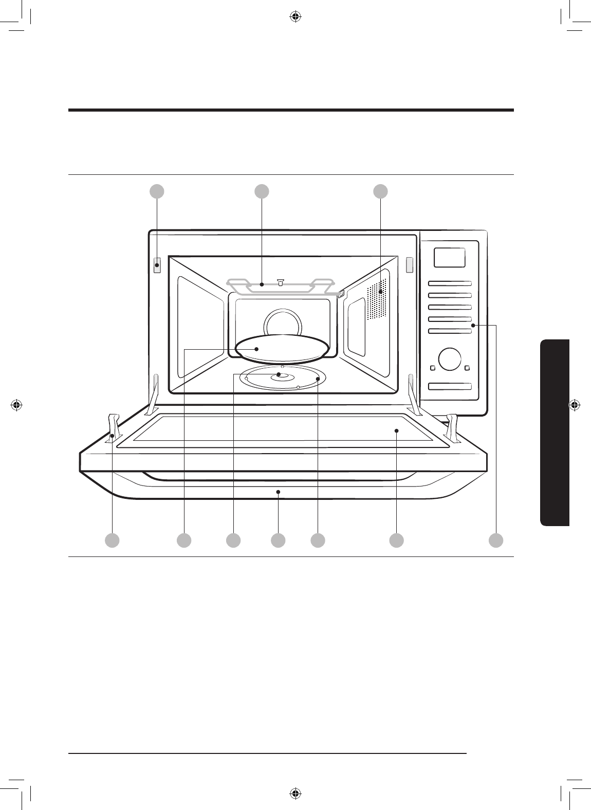 01 Safety interlock holes 02 Heating element 03 Ventilation holes