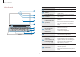 Nociones básicas Funciones de las teclas de acceso rápido Tecla/Icono Tecla/Icono Descripción F1 • Samsung Settings: abre la aplicación Samsung Settings. F9 • Control de brillo de la pantalla: ajusta el brillo de la pantalla. F10 F2 F3 F4 F5 F6 F7 F8 • LCD/Monitor externo: cambia entre la pantalla LCD y un dispositivo de pantalla externa cuando hay un dispositivo de pantalla externa conectado al ordenador(computador). • Panel táctil: activa o desactiva el funcionamiento del panel táctil.