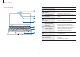 Nociones básicas Funciones de las teclas de acceso directo Tecla/Ícono Descripción F1 • Samsung Settings: Inicia la aplicación Samsung Settings. F2 F3 F4 F5 F9 • Control de brillo de la pantalla: Permite ajustar el brillo de la pantalla. F10 • Monitor/pantalla externa: Cambia entre la pantalla y un dispositivo de pantalla externa cuando un dispositivo de pantalla externa esté conectado a la computadora. • Panel táctil: Permite activar o desactivar la función de Panel táctil.