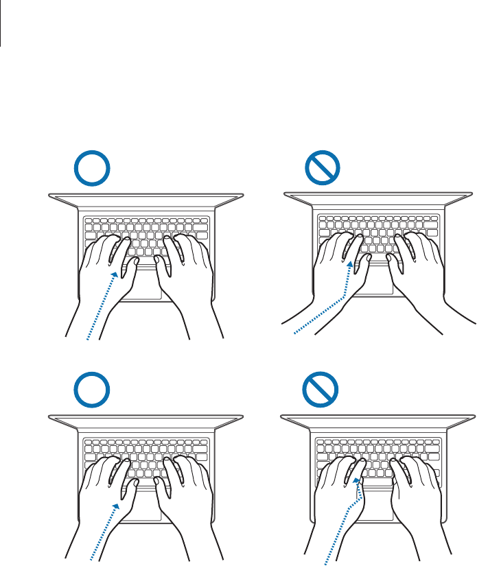 Cuando use el teclado y el panel táctil, los hombros deben estar