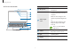 Getting started Number/Name Microphone Ambient light sensor Camera Camera indicator light Display Description • You can use the built-in microphone. • Recognizes the brightness of the environment where you use the computer. Number/Name Power button/ Fingerprint recognition sensor • When the surroundings become dark, the keyboard backlight turns on. Keyboard • When the surroundings become bright, the keyboard backlight turns off. Touchpad Description • Turns the computer on and off.