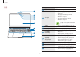 시작하기 뒷면 번호/이름 1 1 통풍구 2 3 3 설명 • 바람을 흡입하거나 컴퓨터 내부에서 발생되는 열을 외부로 내보내는 곳입니다. • 통풍구가 막히면 컴퓨터가 과열되어 위험할 수 있으므로 막히지 않도록 주의하세요. • 어댑터가 연결되어 있지 않은 경우 컴퓨터에 전원을 공급합니다. 2 내장 배터리 • 내장 배터리를 분리하거나 교체하려면 가까운 삼성전자 서비스 센터를 방문하세요. 이 경우 별도의 서비스 비용이 부과됩니다. 3 스피커 • 소리를 출력하는 장치입니다. 뒷면 케이스를 교체 수리할 경우, 교체 전 레이저 각인으로 표시되었던 뒷면의 모델명/제조번호/각종 로고는 표시되지 않습니다. 자세한 내용은 삼성전자 서비스 센터의 안내를 받으세요.