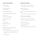 Contents Guía 64 Edición de canales 65 Utilizar una lista de favoritos personales 66 Funciones de soporte para visualización de televisión Conexiones 5 Guía de conexión 6 Conectar una Antena 7 Conexión a Internet 10 Compartir pantalla (Smart View) con su dispositivo móvil 12 Cables de conexión para dispositivos externos 14 Alternancia entre dispositivos externos conectados al televisor 16 Avisos sobre la conexión Periféricos 18 Control de dispositivos externos con el control remoto Sam